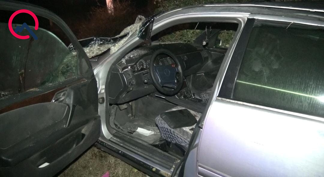“omrum.az” xəbər verir ki, hadisə zamanı “Mercedes” markalı minik avtomobili idarəetmədən çıxaraq yol kənarında aşıb.